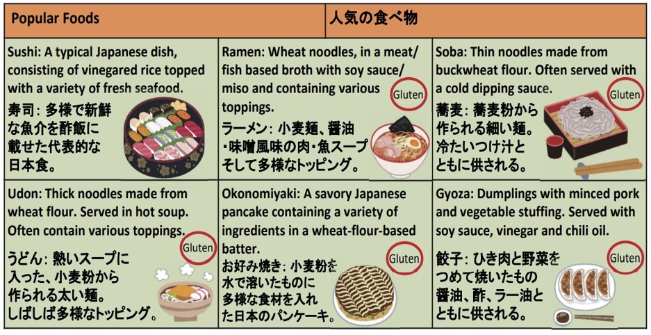 B:I can only think of sushi, tempura, okonomiyaki and pork cutlet.