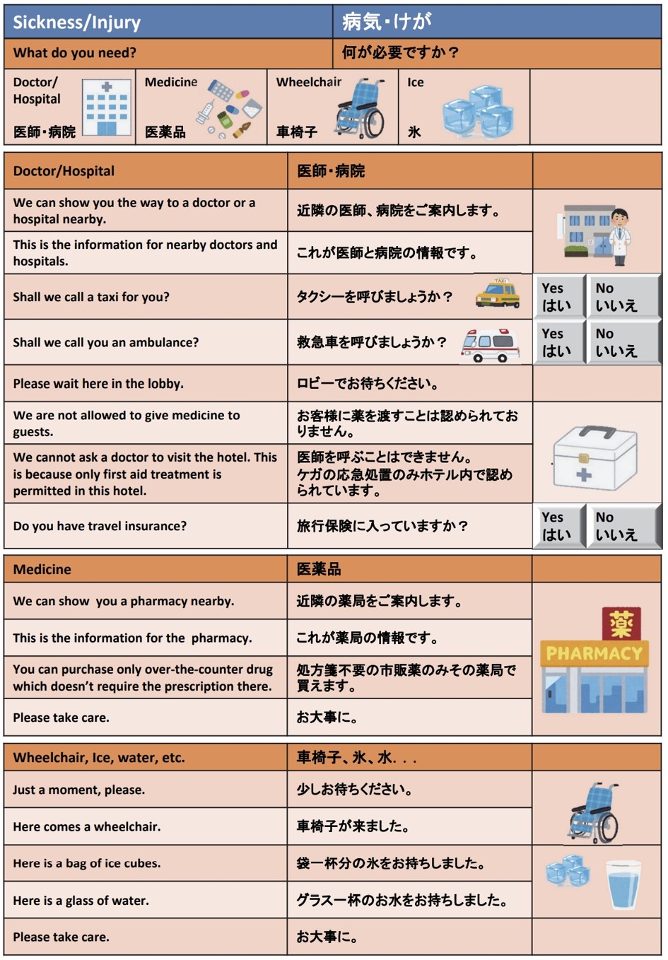 私:(sick しか聞き取れなかった場合) 具合が悪いのですか? 少々お待ちください。どなたの具合が悪いのですか?