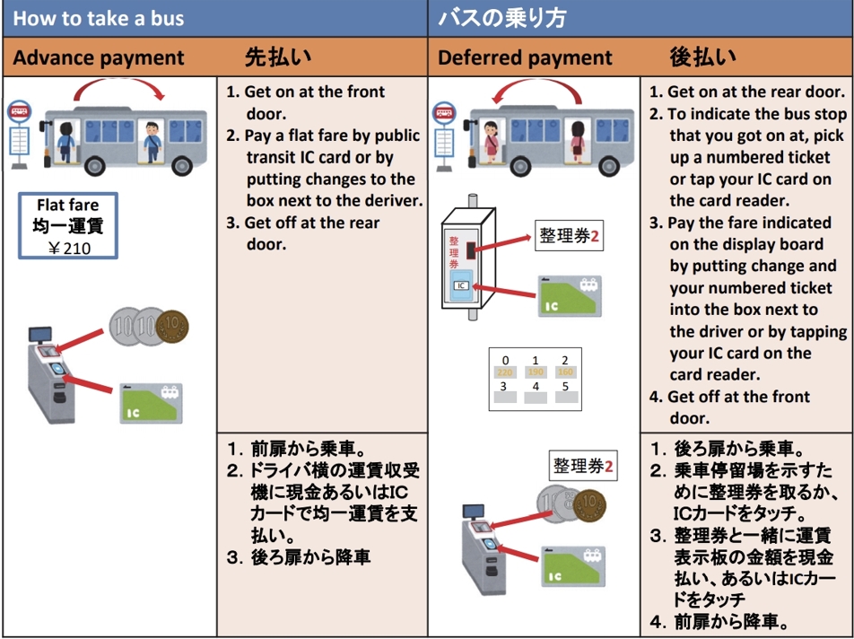 To get off, press the call button in front of your seat and bus will stop at the next bus stop.