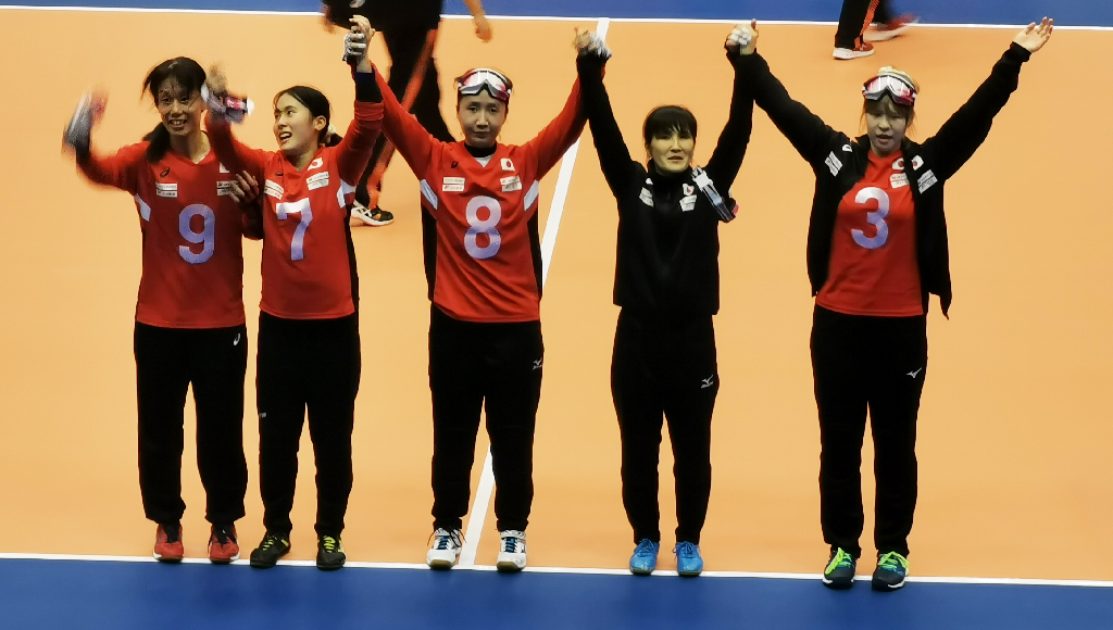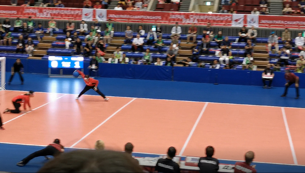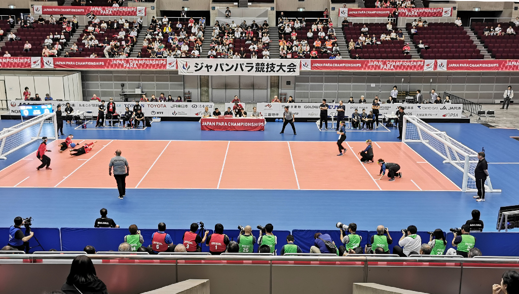 視覚障害者を対象にしたチーム球技。全盲から弱視の選手まで出場できるが、公平に競技を行うため、全員アイシェード(目隠し)を着用する。バレーボールコート大の(18メートルx9メートル)コートを使い、1チーム3人の2チームで対戦。鈴の入ったボールを転がし、相手のゴールに入れて得点を競う。守備側は3人で協力し、全身でゴール(幅9メートルx高さ1.3メートル)を守る。1試合は前後半12分ハーフで、延長戦(前・後半各3分)になった場合は「ゴールデンゴール方式」で行われる。攻撃側は、スピードボールやバウンドボールを用いてディフェンスしづらいコースを狙ったり、できるだけ音を消してボールの出所が分からないように投球するなどの駆け引きがある。守備側はボールの中の鈴の音や相手選手の足音やボールがバウントした位置により、ボールが転がってくるコースを瞬時に察知し、身体を横たえ守備の壁をつくってボールを止める。選手が音を頼りにプレイするので、観客には静かに見守ることが求められる。ボールはゴールボール専用で、1.25Kgの重さがあります。プレー中は観客も静かに観戦するのがマナーです。
