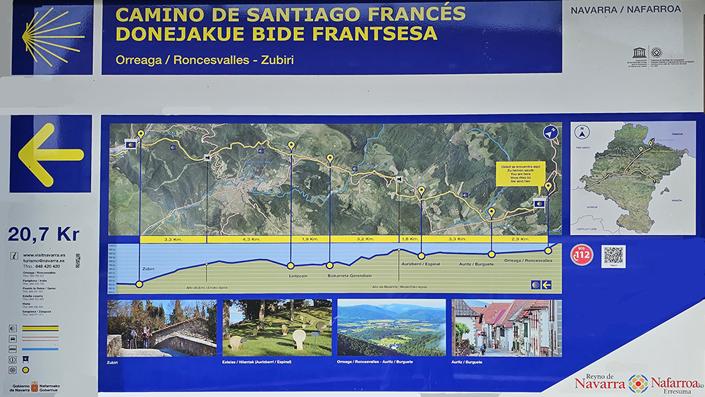 ロンセスバーリェスからズビリまでの経路と高低差時