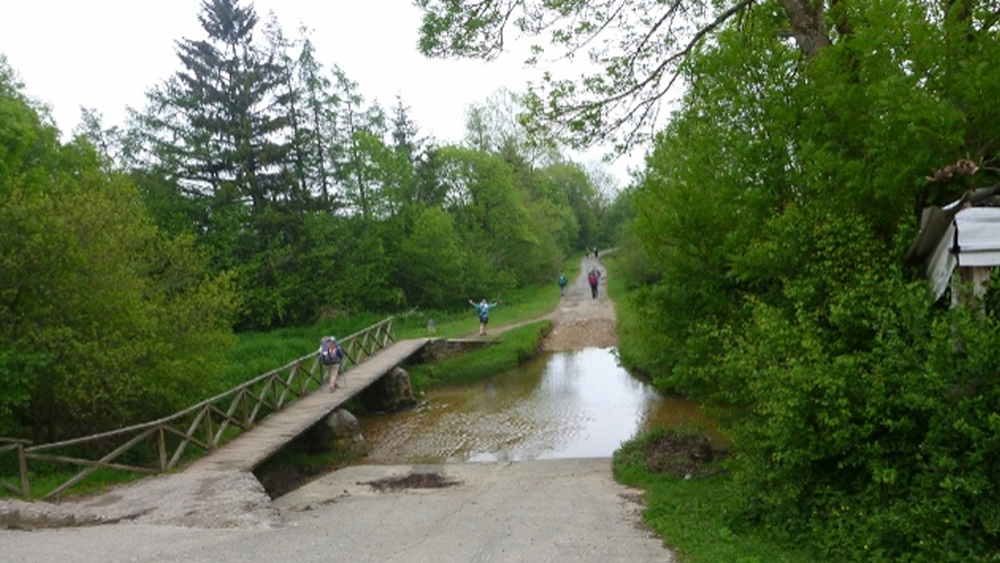 巡礼路の案内とともに林の中に入って行く!
