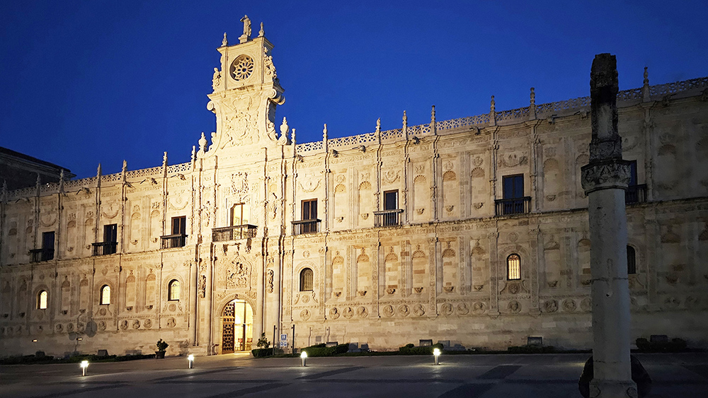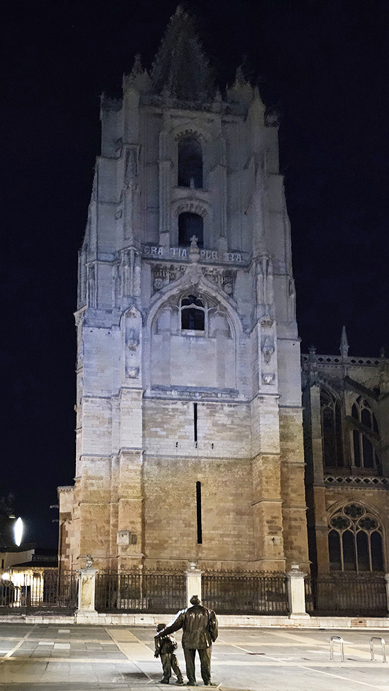 レオン大聖堂を見上げている巡礼者